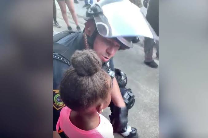 The girl in a vedio which gone viral was in the George Floyd’s protest with her parents and she asked a police officer’ are you gonna shoot us’ the police officer responded that we are not here to hurt you..you can protest,you can party, you can do whatever you want ..just don’t break anything..